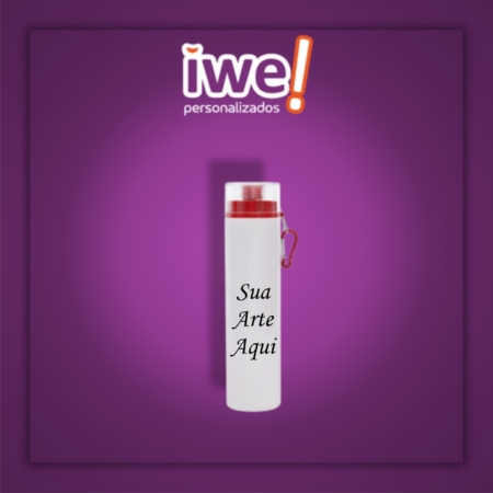 • Garrafa de Alumínio Mosquetão C/Tampa Vermelha( Branca )