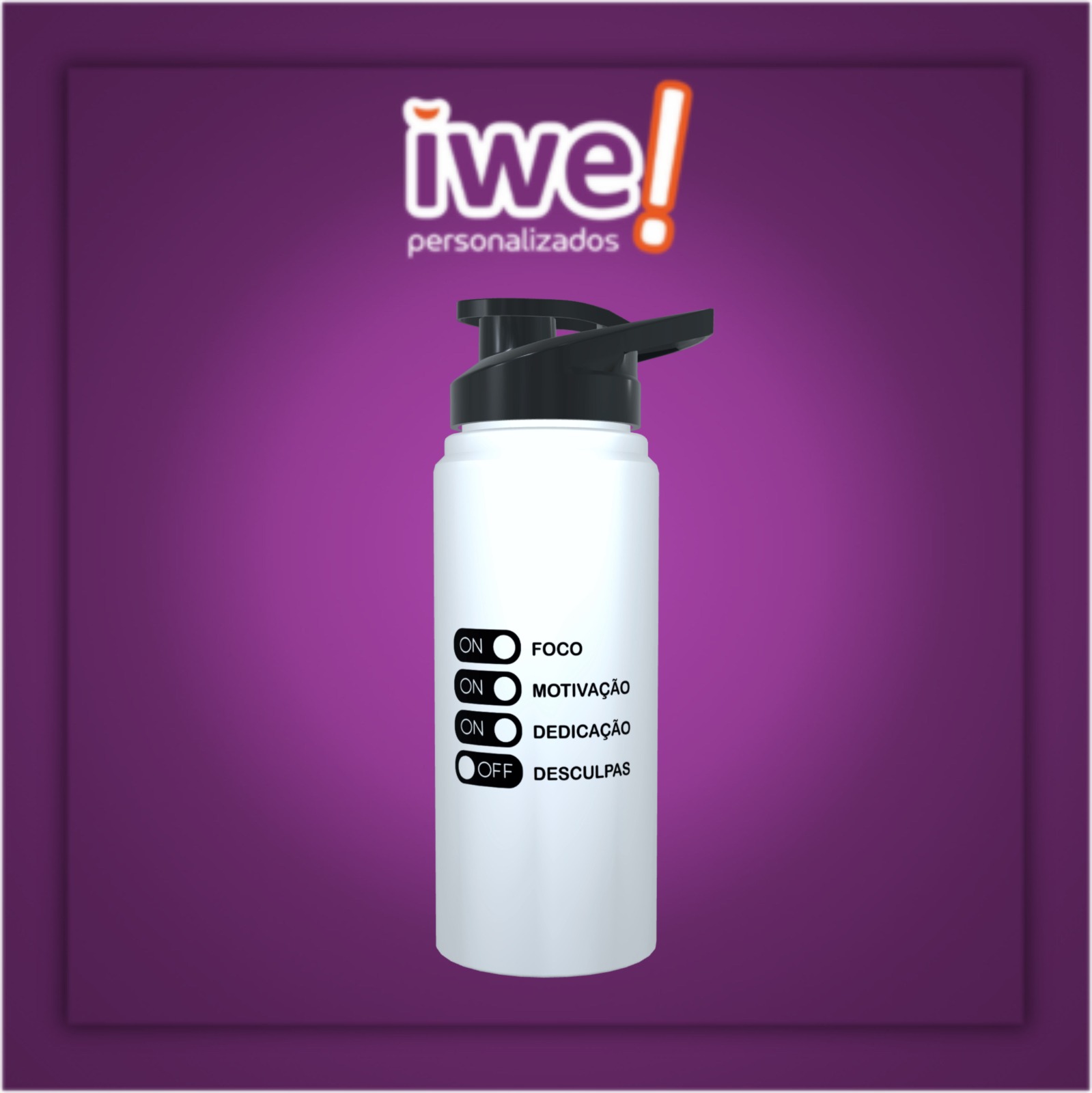 A squeeze personalizada de 750ml apresenta uma estampa com frase inspiradora, trazendo um design minimalista em preto e branco que transmite foco, disciplina e determinação. Ideal para quem busca motivação diária e um acessório com propósito.